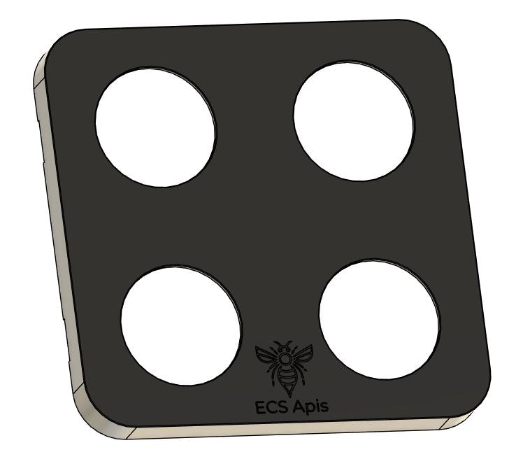 This top of hive feeder sits over the inner cover hole to allow your bees access to their syrup or sugar water without risk of robbing. Four standard size mason jar feeder lids sit in the stand leaving the appropriate amount of bee space below the lid and above the inner cover. A leg in the center provides additional support for the additional weight in comparison to the 2 jar version.